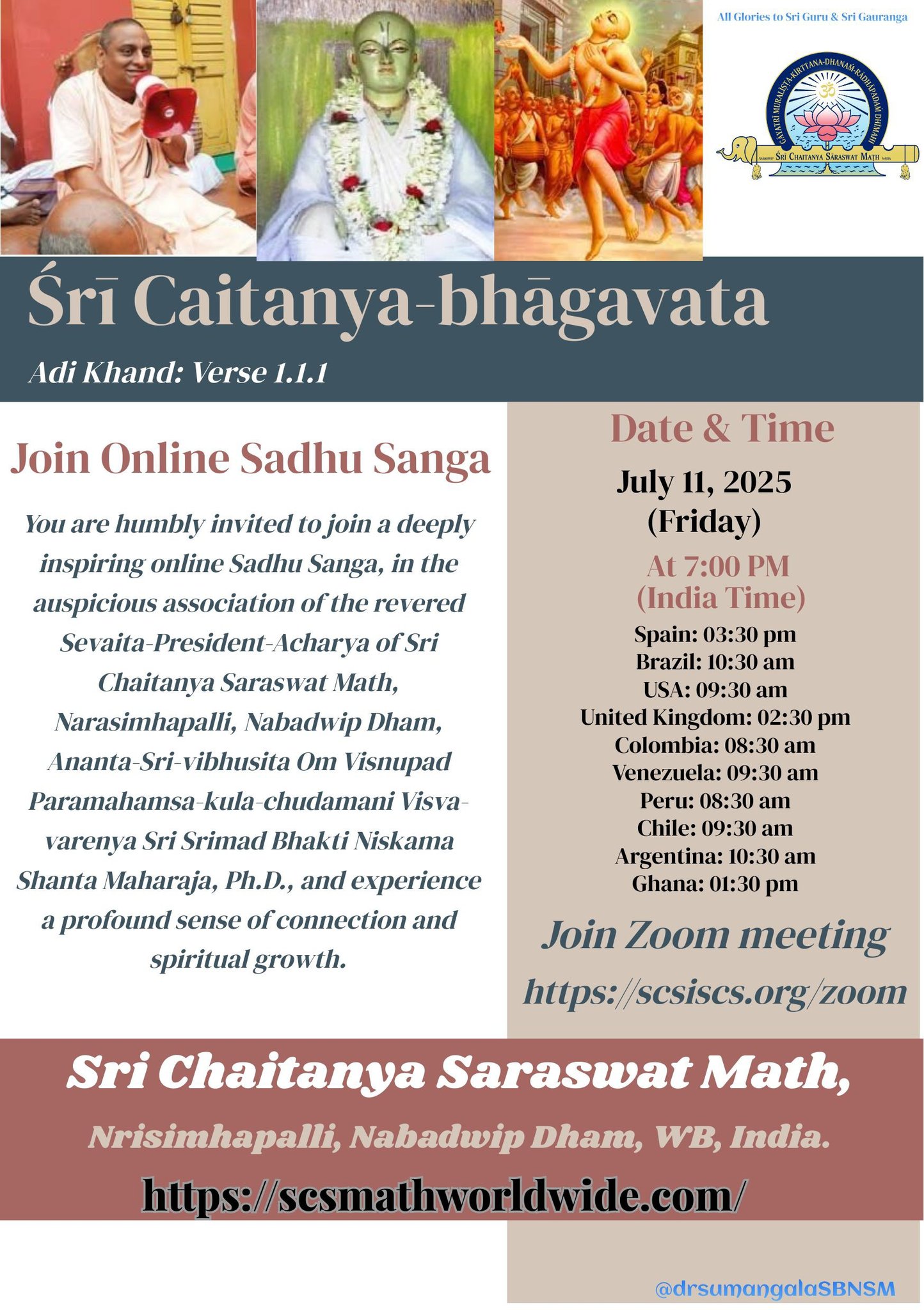 July 10th, 2025 โ On the sacred occasion of Guru Purnima, devotees from all over the world gathered via Zoom under the loving and quietly powerful guidance of ลrฤซla Bhakti Niskama Shanta Maharaja, to celebrate this deeply meaningful day in the Gaudiya Vaishnava tradition.