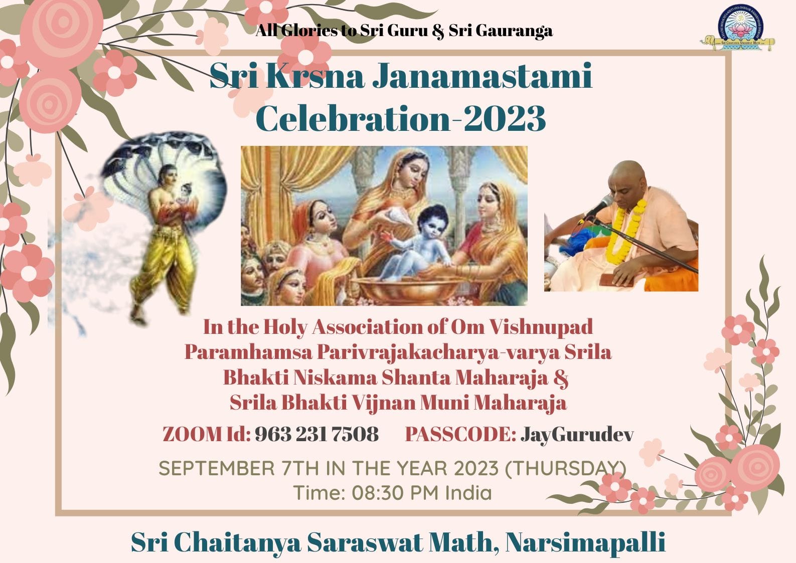 | Gaura Purnima 2023 | Srila Bhakti Niskama Shanta Maharaja's Vysapuja 2023 | Srila Bhakti Nirmal Acharya Maharaja's Dissapearence Festival | Sri Jagannath Puri Ratha Yatra 2023 |